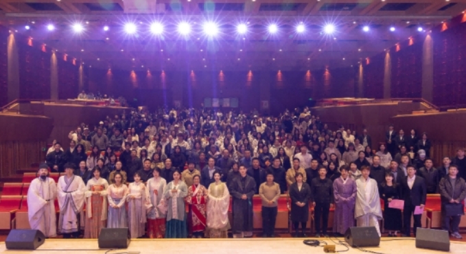 10月30日晚,渭南师范学院莫斯科艺术学院“丝路艺创”辅导员工作室开学第一课——“中华优秀传统文化进校园”活动在逸夫楼音乐厅精彩开讲。特邀优秀校友国风达人“皮卡晨”冯佳晨、李白扮演者高鑫、子虞三位嘉宾齐聚一堂,以沉浸式、互动式的体验,为现场师生奉上了一场传统文化盛宴。